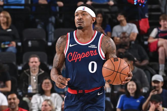 本场比赛中,虽然快船取得了一场大胜,但是球队的先发后场新援布拉德利-比尔(Bradley Beal)面对着自己上赛季效力的老东家太阳的表现只能算是马马虎虎。比尔全场出场20分06秒,投篮4中2,罚球2中2,得到了6分1篮板2助攻的数据,还有1次失误和1次犯规,正负值为+2。比尔在进攻端还是展现出了一定的得分能力,他在传导球方面其实也是能够起到一定的效果的。只是问题就在于,他实在是没有得到足够的球权和战术地位,他在很多时候只能蹲在底角等待机会,这样的战术安排也没有办法使得他全面的得分能力发挥出来。比尔在防守端其实还是比较积极的,并且也是展现出了一定的个人防守能力的。比尔在攻防两端的表现其实都不算糟糕,他的状态并不差,他的比赛态度也是相当积极的。只是受制于球队的战术安排,他确实是没有办法打出更好的表现。